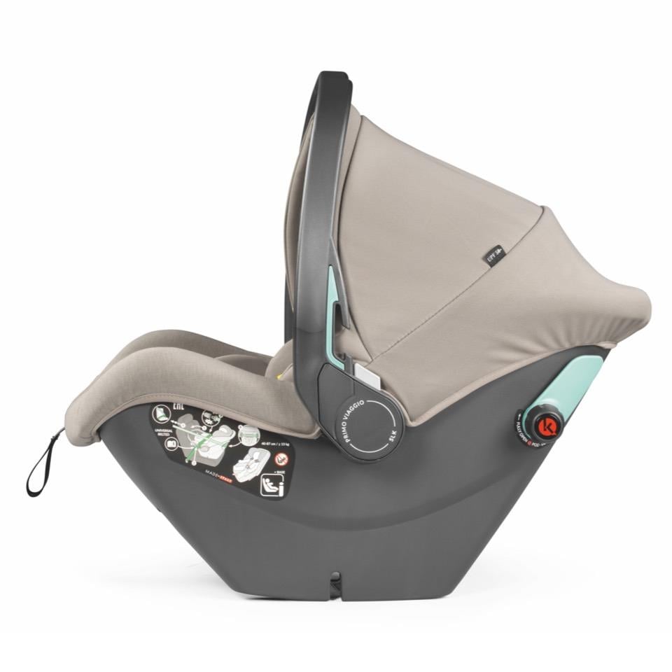 Araç emniyet kemerleri veya Base i-Size (aksesuar) ile oto koltuğuna sabitlenebilir. Üstelik uçak yolculuğu için de uygundur.